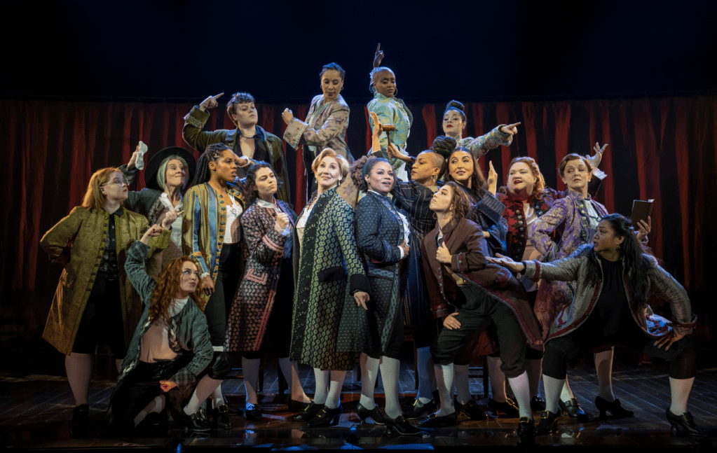 Directed by Jeffrey L. Page and Diane Paulus, “1776” makes recent decisions to highlight its purpose. First, the show begins with the all-female cast slipping into era coats and pulling their white sock up to their knees, which is quite powerful. Second, all characters are played by females, which is great. And Thirdly, songs feel more impactful when sung from a woman’s point of view. It definitely hit you differently. Viewers might think of ‘Hamilton’ as there are similarities in themes, but this work of art showcases authentic power at it’s finest. It truly feels like a theater triumph.